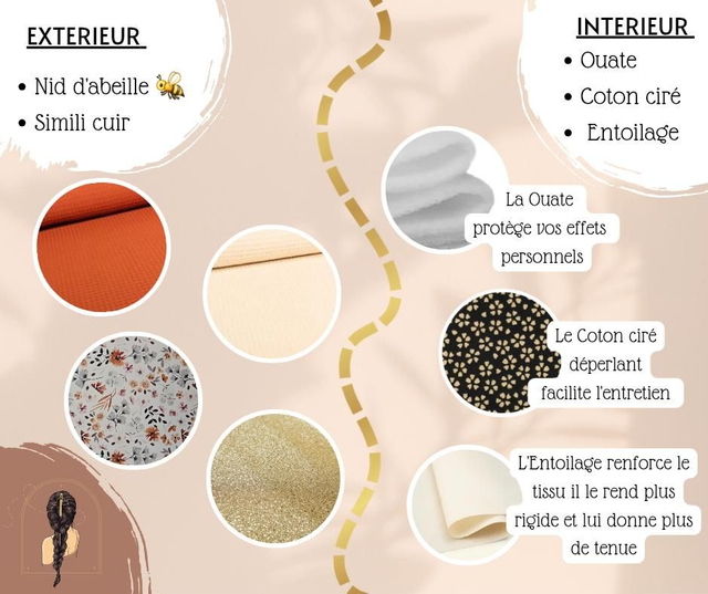 Extérieur : Coton nid d'abeille + simili cuir.