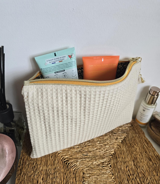 Cette jolie pochette est pensée pour contenir vos essentiels, vos accessoires de beauté et vous accompagner dans vos escapades.🌸