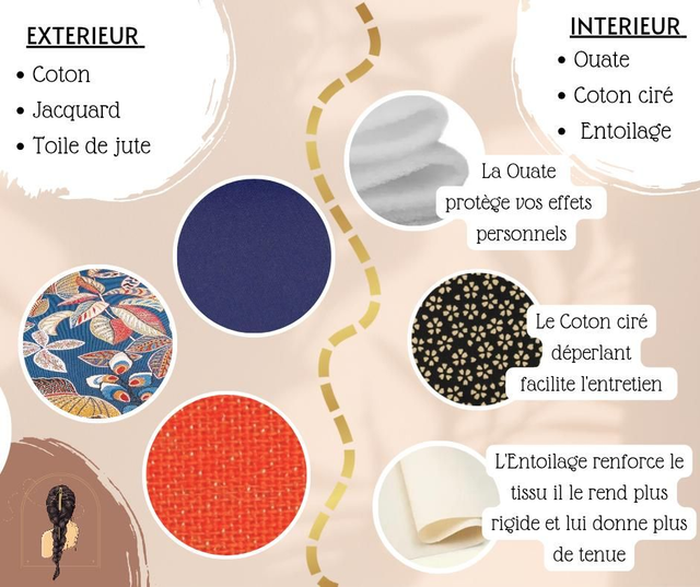 Extérieur : Jacquard + toile de jute + coton.