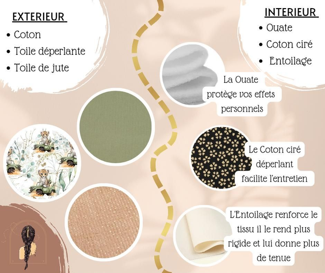 Extérieur : Coton + toile déperlante léopard + toile de jute.