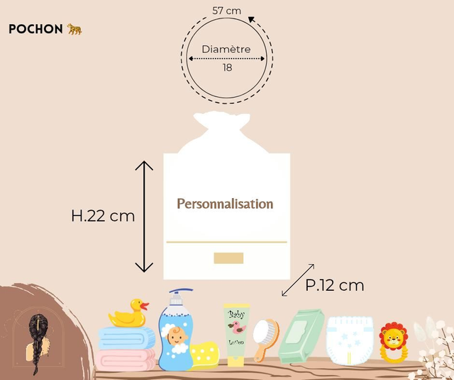 Ce joli pochon personnalisé 🐆 est idéale pour contenir le necessaire de toilette de bébé, il offre une belle contenance ainsi que 6 poches.