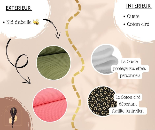 💧Sa doublure en coton ciré déperlant facilite l'entretien.